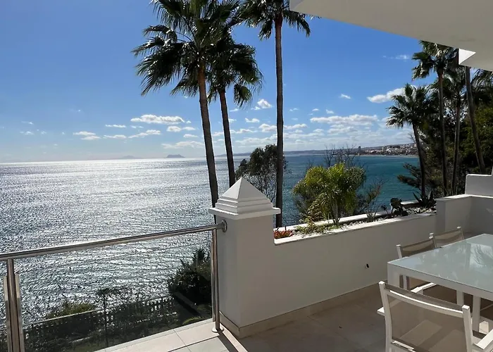 Estepona Beach Front Apartment With Stunning Sea Views er en strand- ferielejlighed i Estepona inden for 19 minutters gåtur fra Plaza de las Flores de Estepona. Denne ferielejlighed med udsigt over havet indeholder 2 værelser, 2 badeværelser og et fuldt udstyret køkken.